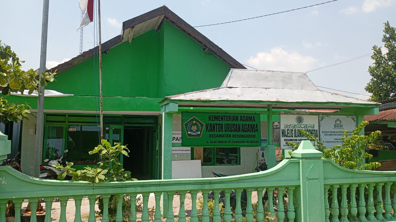KUA Kedungadem merupakan salah satu dari 27 KUA di lingkungan Kantor Kementerian Agama Kabupaten Bojonegoro Yang tergolong Tua yakni berdiri pada Tahun 1956. KUA Kedungadem di bangun di atas tanah dengan status Bangunan Milik Sendiri dengan klasifikasi sebagai berikut: